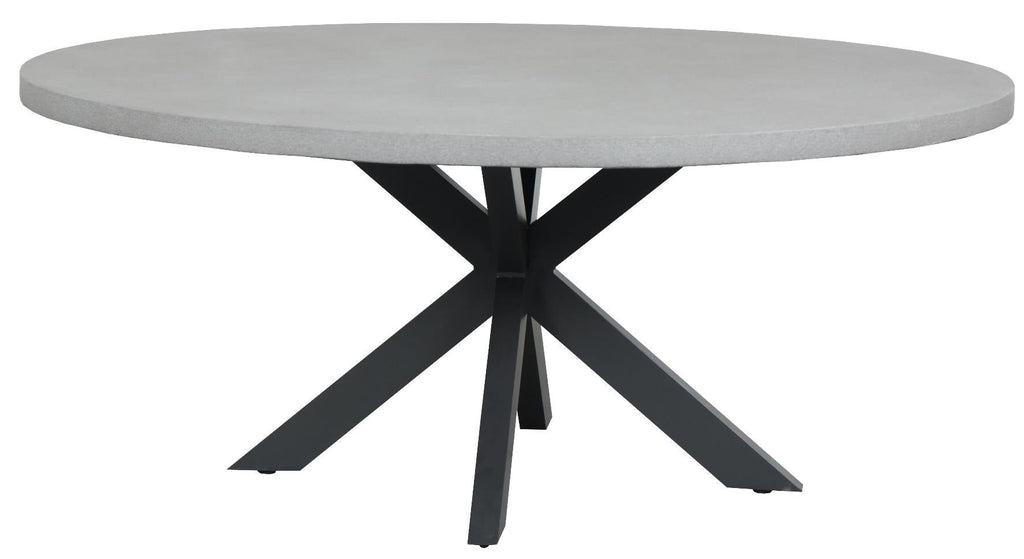 Constructed with both style and practicality in mind, this durable Cement Round Table is the perfect addition to any home., indoor or out. The non-rust aluminum cross legs feature a long-lasting powder coat finish and adjustable feet, ensuring stability even on uneven surfaces. Hand-finished and with slight color variations, each table is truly one-of-a-kind.