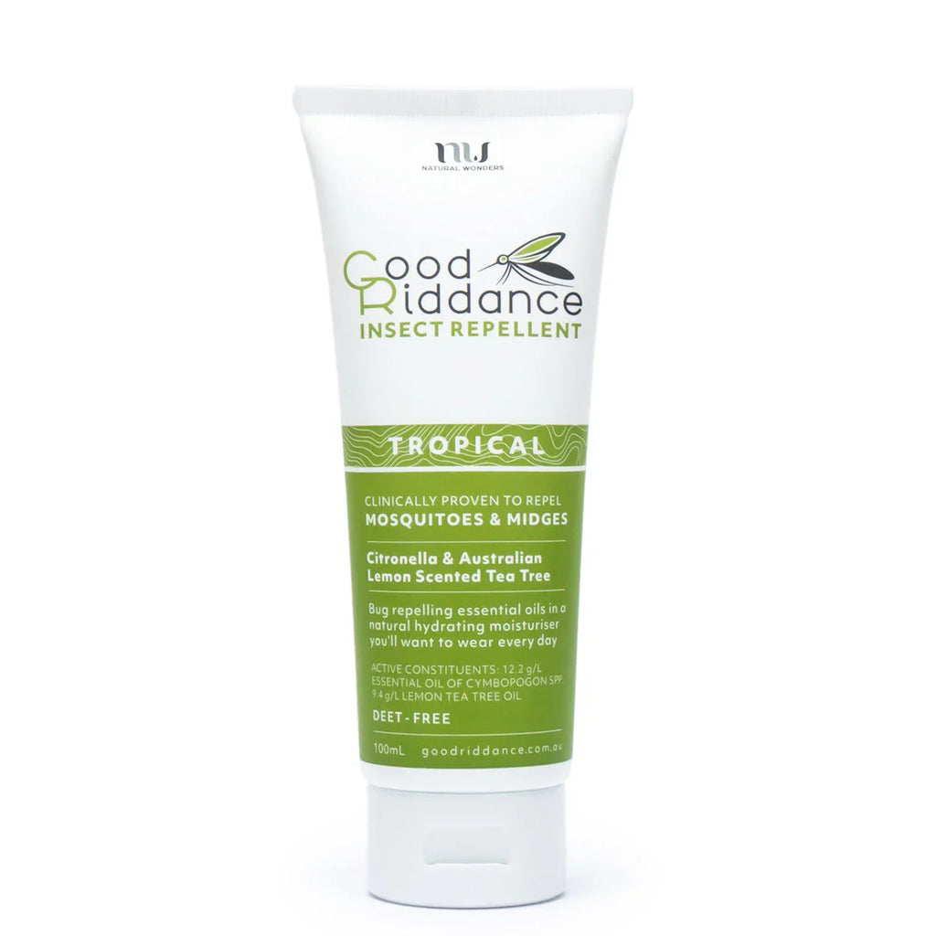 Good Riddance Tropical Insect Repellent is an effective natural bug repellent which provides long-lasting, tropical strength protection against mozzies, midges and sandflies that can carry harmful viruses such as Ross River and Dengue.