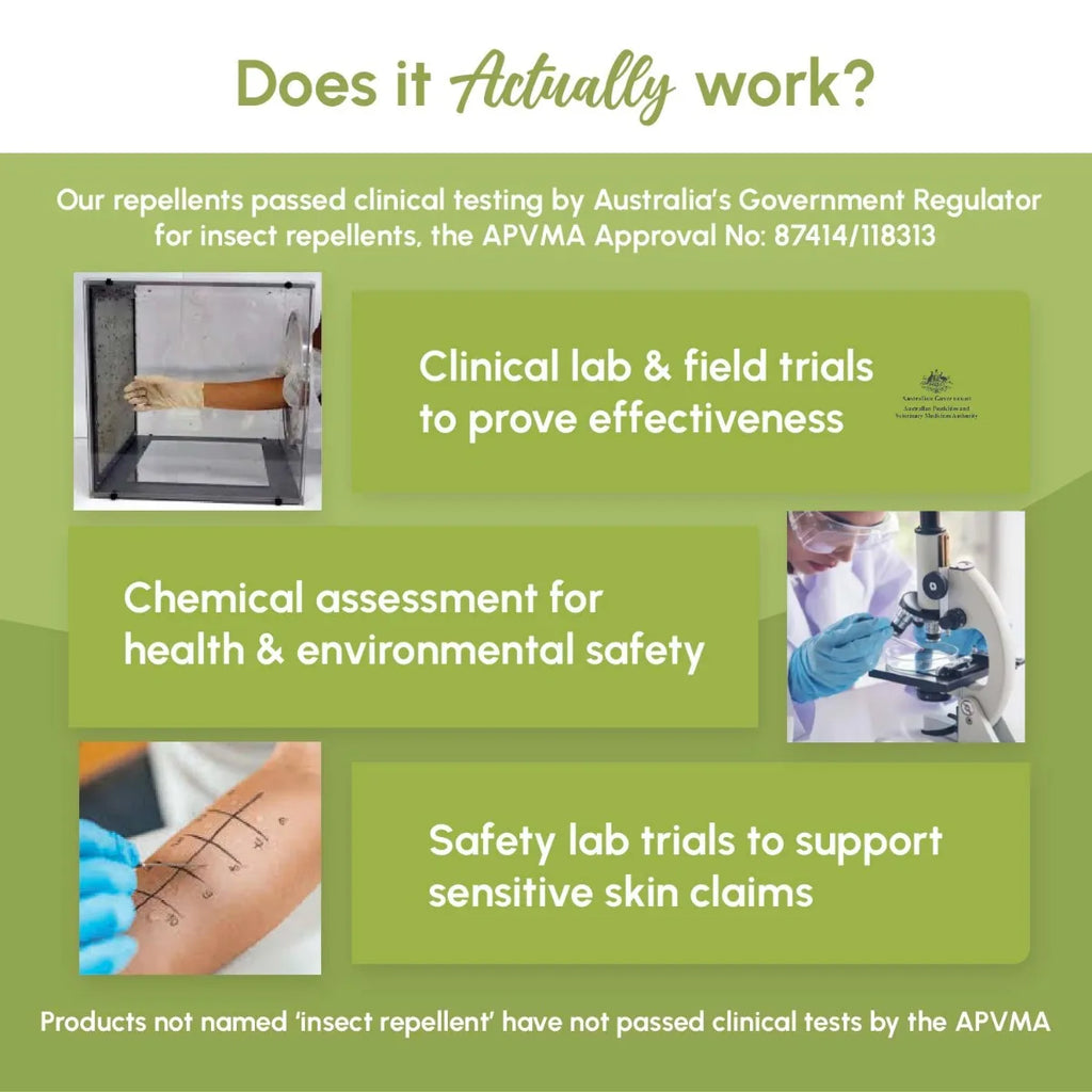 Good Riddance 100ML Tropical was created in Darwin and evaluated in Kakadu as a more suitable, family-friendly substitute for harmful DEET products. The entire bug repellent collection is officially registered by APVMA and has undergone thorough clinical testing at independent labs nationwide to guarantee its effectiveness against any DEET-based product available.