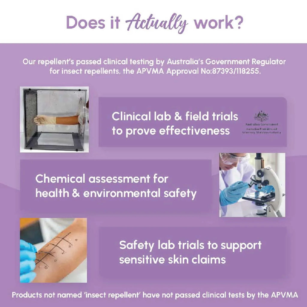 Developed in Darwin and tested in Kakadu, Good Riddance Sensitive Insect Repellent offers a gentler alternative to harsh DEET products and citronella-based repellents. The entire range is APVMA registered and has undergone rigorous clinical testing at independent labs across Australia, making it a strong competitor to any DEET-based product on the market.