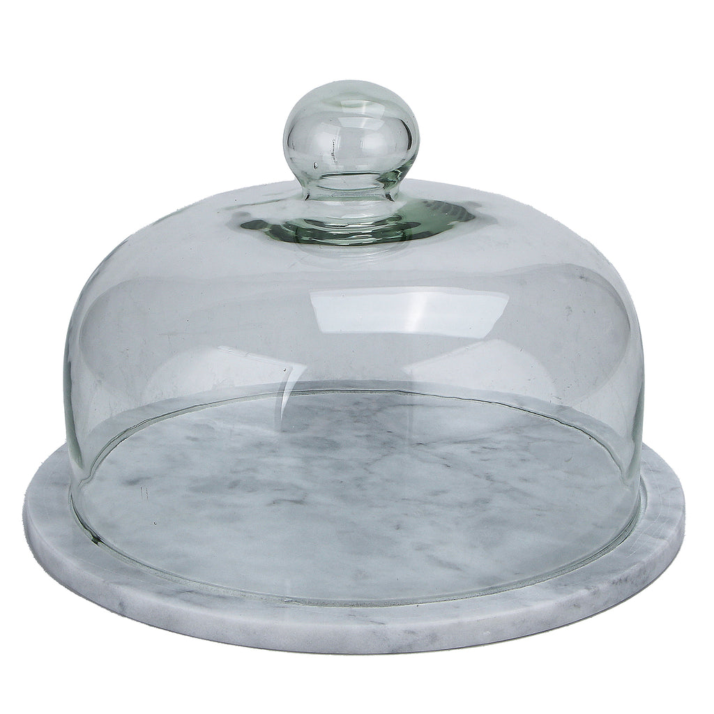 Elevate your kitchen or dining display with this elegant marble and glass dome. Measuring 25 x 18 cm, it features a sturdy white marble base and a clear glass cloche with a rounded knob for easy handling. Perfect for showcasing cakes, cheeses, pastries, or appetizers, this timeless piece blends functionality with refined style, making it an ideal centerpiece for any table or countertop. Whether for everyday use or special occasions, this dome brings a touch of sophistication to your presentation.