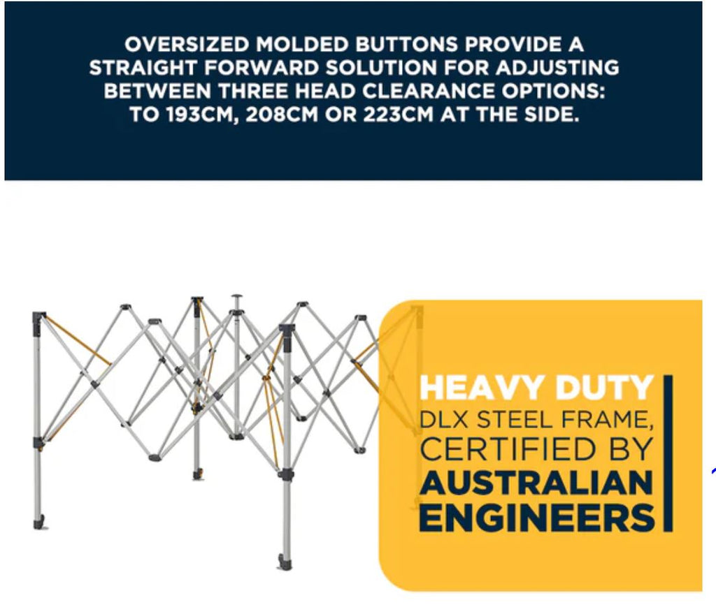 - Engineering Approval: Tested & certified by Australian Engineers for sufficiency of design to meet the Building Code of Australia for temporary structures.
