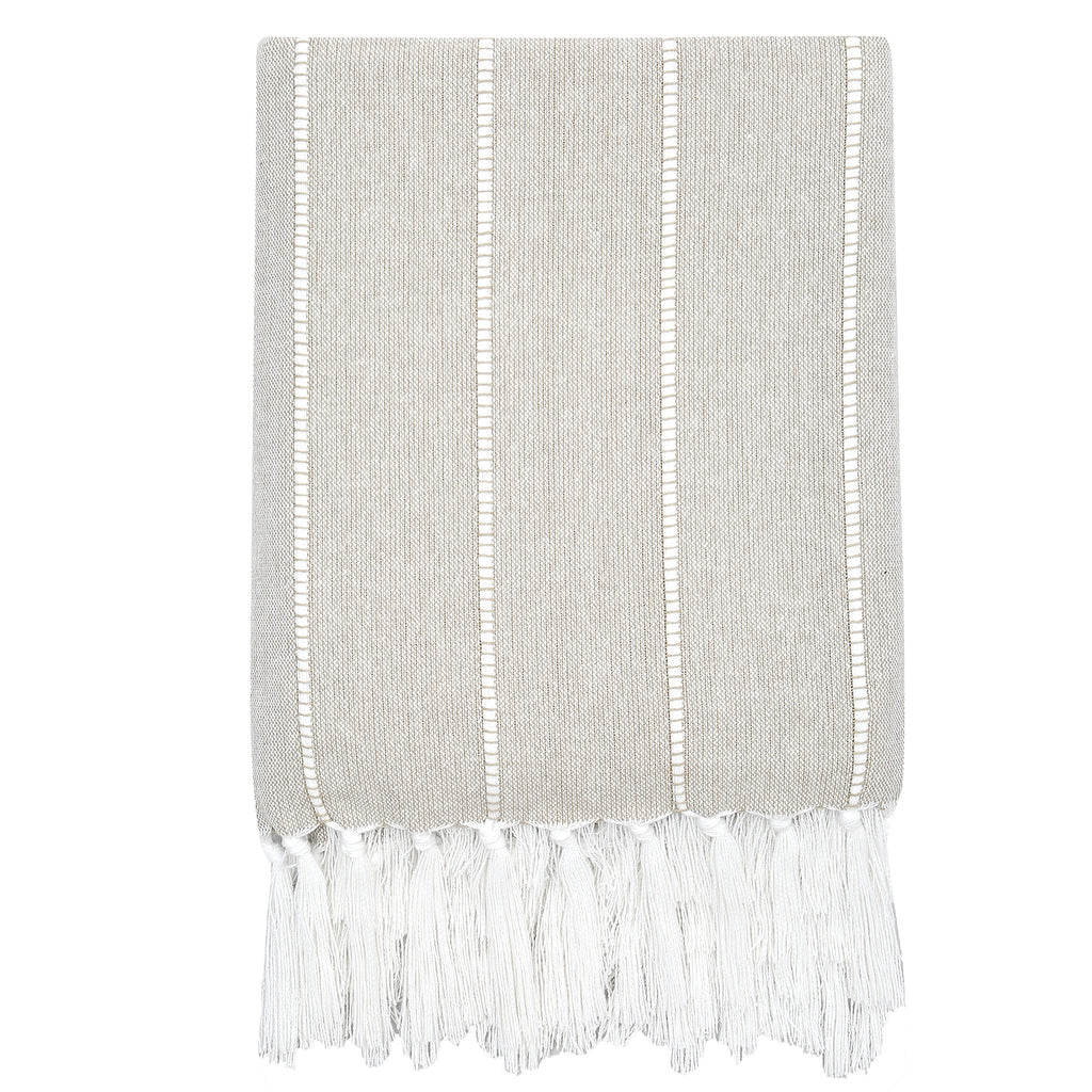 Lightweight and effortlessly stylish, this 130 x 150 cm cotton throw is a perfect summer addition to any space. In a soft beige tone with cream tassels, it adds a touch of warmth and texture without feeling heavy. Ideal for draping over a sofa, bed, or outdoor seating, this throw brings a relaxed, natural charm to your home.